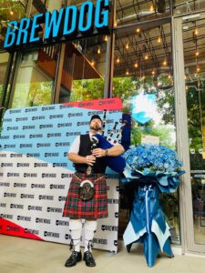 In July, the international Scottish beer brand, BrewDog, opened a taproom in Bangkok. To celebrate the Scottish connection, they brought me in to play some bagpipes outside of the bar.