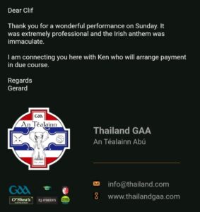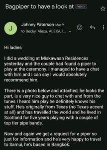 Now and again we get a request for a piper so just for information and he’s very happy to travel to Samui, he’s based in Bangkok.